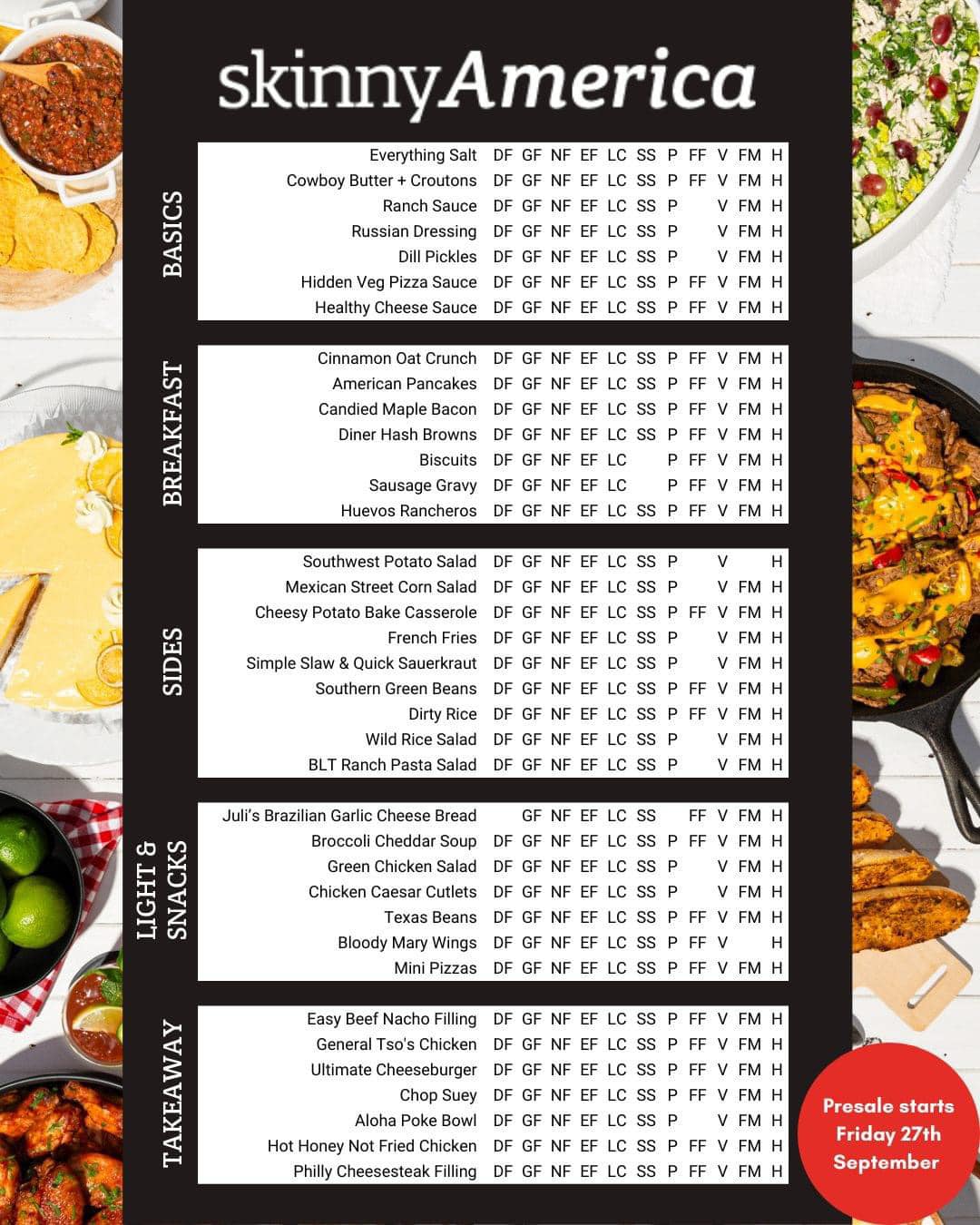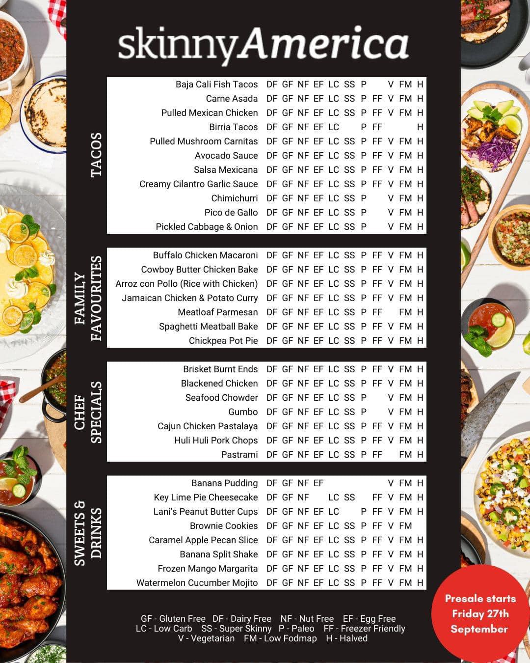 With Skinnies favourites including – Philly Cheesesteak, Birria Tacos, Seafood Chowder, Peanut Butter Cups, American Pancakes, BLT Ranch Pasta Salad, Bloody Mary Wings, Blackened Chicken, Dirty Rice, General Tso’s Chicken, Chop Suey, Meatloaf Parmesan, Buffalo Chicken Macaroni, Cowboy Butter Chicken Bake, Gumbo, Brownie Cookies, Brisket Burnt Ends, Pastrami, Carne Asada, Broccoli Cheddar Soup, Mini Pizzas, Spaghetti Meatball Bake, Banana Pudding, Key Lime Pie Cheesecake, Frozen Mango Margarita, Caramel Apple Pecan Slice, Ultimate Cheeseburger and so much more!