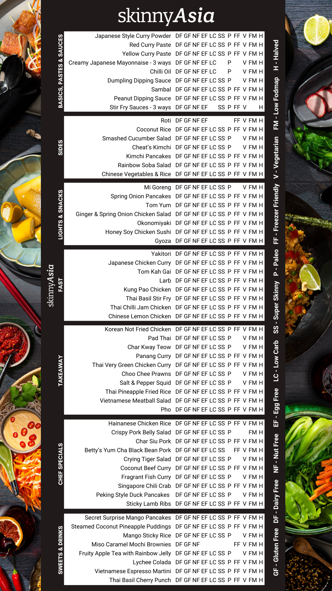 With Skinnies favourites including – Mi Goreng, Roti, Panang Curry, Okonomiyaki, Hainanese Chicken Rice, Korean Not Fried Chicken, Miso Caramel Mochi Brownies, Vietnamese Espresso Martini, Pad Thai, Creamy Japanese Mayo, Chinese Lemon Chicken, Crying Tiger Beef, Kung Pao Chicken, Char Kway Teow, Spring Onion Pancakes, Honey Soy Chicken Sushi, Japanese Chicken Curry, Choo Chee Prawns, Salt & Pepper Squid, Thai Chilli Jam Chicken, Mango Pancakes, Sticky Lamb Ribs, Crispy Pork Belly Salad, Mango Sticky Rice and so much more!